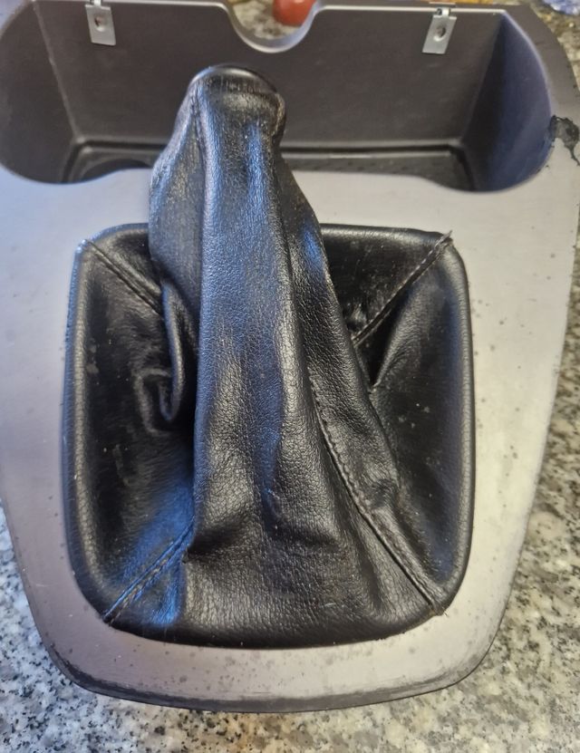 Palanca de cambios de piel negra usada. Está en buen estado, aunque muestra señales normales de uso. - Material: Piel. - Color: Negro. - Usada.
