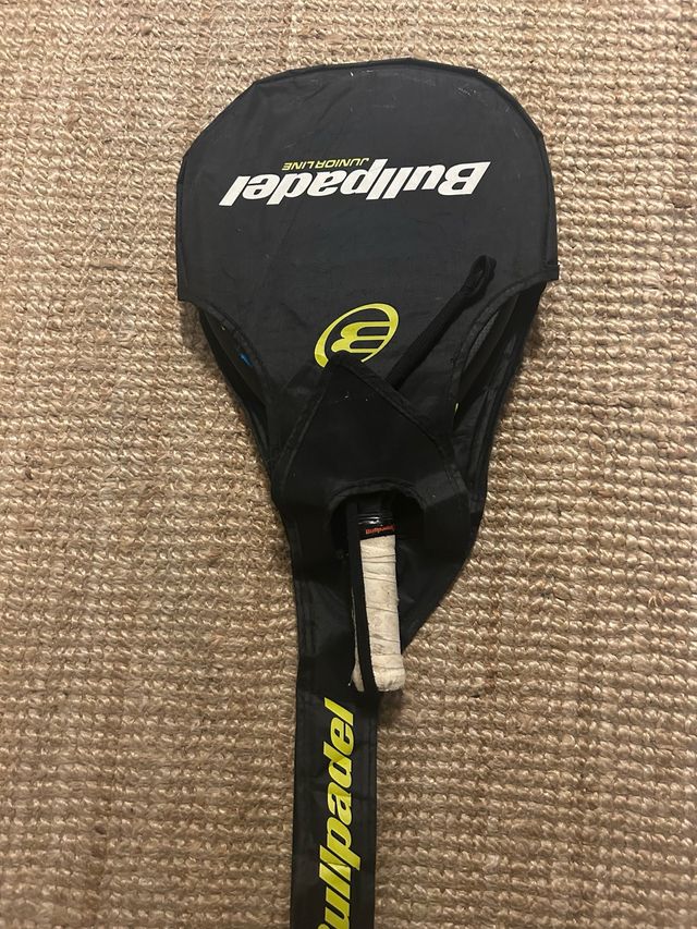 Detalles del productoPalas de Pádel JUNIOR , para niños. 2X50€. Grosor Este grosor ligeramente inferior (3mm menos que el estándar de 38mm) es una de las adaptaciones que Bullpadel hizo para este modelo junior, con el fin de hacerla aún más manejable y ligera para los niños, facilitando el swing y el control.