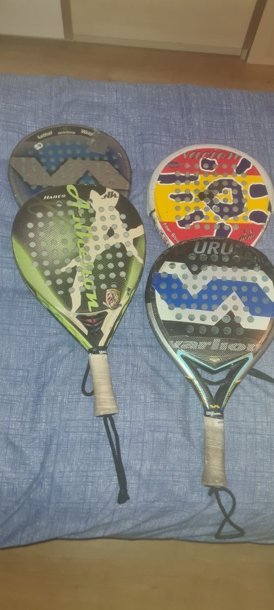 4 palas de padel , hay que reparar . Las 4 en 40 euros. Por separado preguntar .