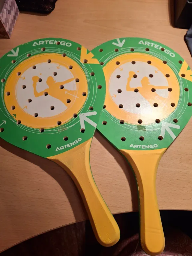 Detalles del productoSet de dos palas de playa de la marca Artengo. Perfectas para disfrutar del verano + frisbee azul