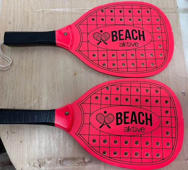 Detalles del productoConjunto de dos palas de madera para jugar en la playa.