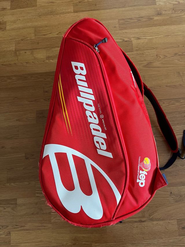 Paletero Bullpadel en color rojo, con diseño deportivo y logo de la FEP. - Color: Rojo - Marca: Bullpadel - Logo FEP