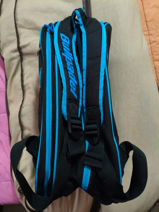 Detalles del productoPaletero de pádel Bullpadel en color negro con detalles en azul.