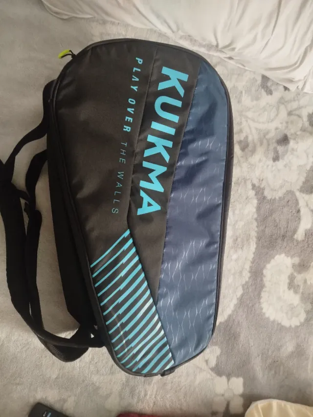 Paletero de la marca Kuikma con un diseño moderno. - Color principal gris oscuro y azul. - Detalles en color azul claro. - Cierre de cremallera.