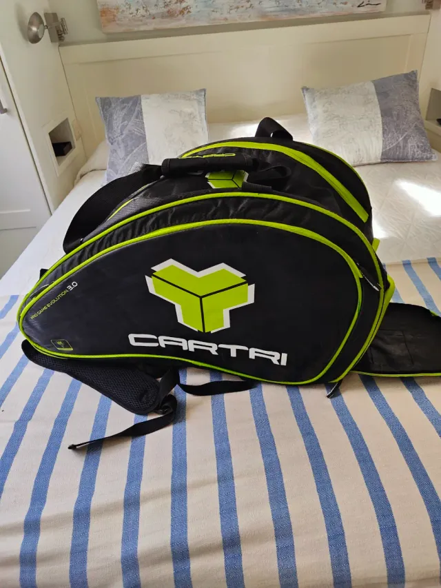 - Logo de Cartri en la parte frontal.tiene un pequeño defecto que se ve en la ultima foto.pero está nueva sin estrenar.fue un premio de un torneo de padel