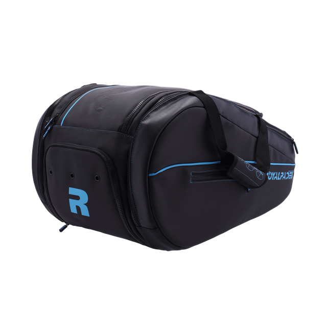 Detalles del productoPaletero de pádel Royal Padel, modelo RP Azul Signature Pro. Diseñado en color negro con detalles en azul.