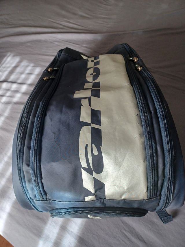 Con dos apartados laterales para palas ,dos bolsillos para objetos ,y bolsa aislada para zapatillas o ropa ,no regateos dado el precio.
