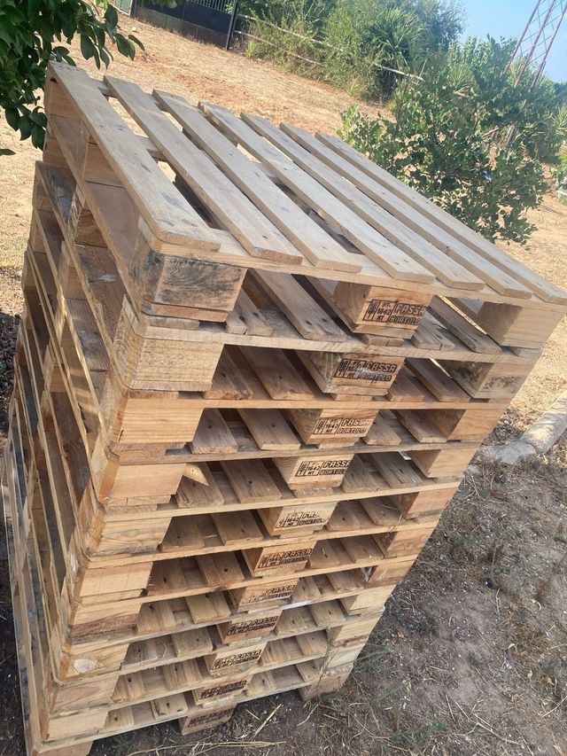 Conjunto de palets de madera, listos para su uso. - Material: Madera. - Apilables para optimizar espacio. - Ideales para transporte o almacenamiento. medidas:105 x 90