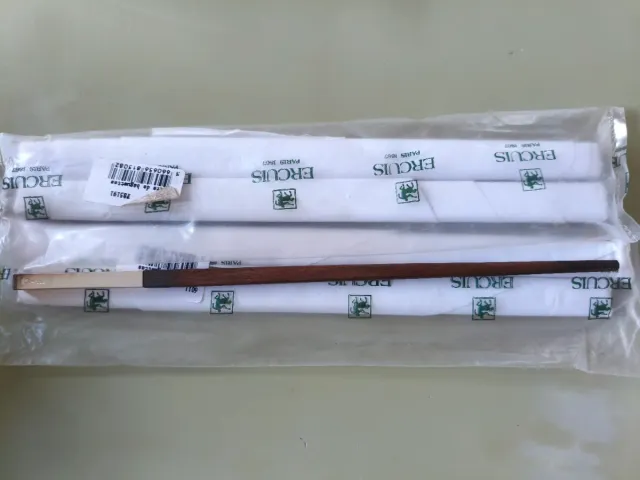 Elegantes palillos de la prestigiosa marca Ercuis, fabricados en París. 4 pares sin abrir. Madera y metal bañado en plata
