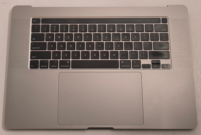 Detalles del productoVendo reposamanos con teclado y touchbar de un Macbook Pro a2141 de 16". Compatible con Macbooks Pro a2141 de 2019. Color gris espacial. Batería, altavoces, ventiladores... incluidos. Trackpad no incluido en el precio.