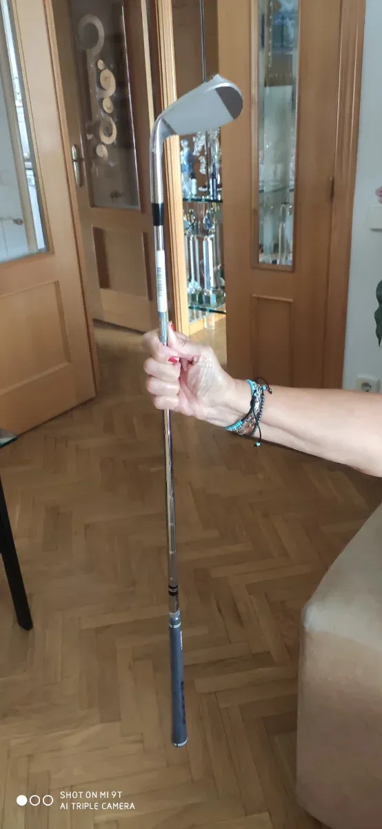 Palo de golf de la marca Cobra. - Diseño plateado y negro. - Grip gris.