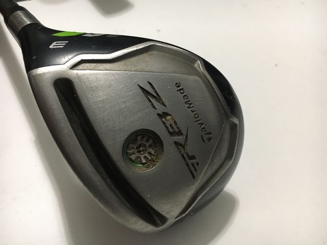Palo de golf TaylorMade RBZ 3. - Marca: TaylorMade - Modelo: RBZ 3 - Diseño plateado y negro con detalles verdes.