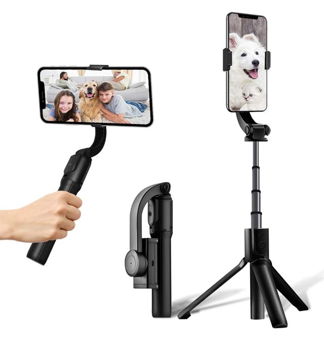SIN USAR. Palo selfie con estabilizador recargable USB (Grimbal 1 eje). Función tripode y disparo remoto por bluetooth. Más características en la última foto.