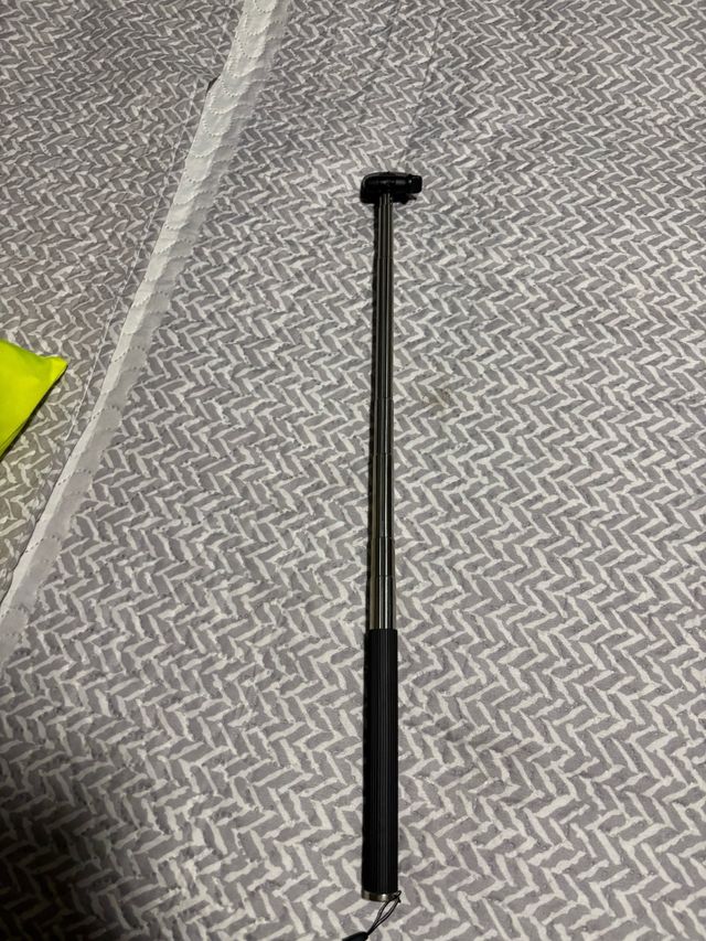 Palo de selfie extensible, ideal para capturar tus momentos. - Mango de goma antideslizante. - Varilla metálica ajustable. - Soporte para móvil en la parte superior.