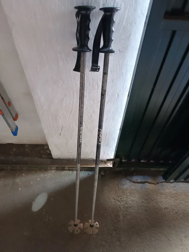 Detalles del productoPar de palos LOOK BASIC 27 de esquí con empuñaduras negras y detalles plateados.