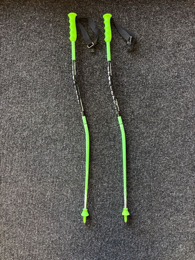Palos de esquí KOMPERDELL para competición. - Color verde lima. - Empuñaduras ergonómicas. - Correas de sujeción negras.