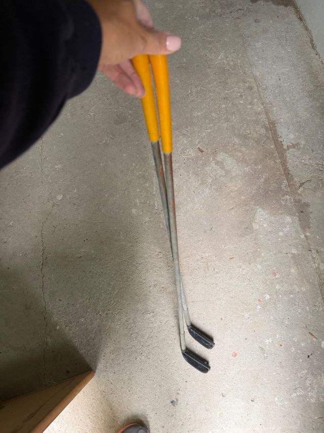 Dos palos de golf antiguos con mangos amarillos. - Mangos de color amarillo. - Varillas metálicas. Precio del Pack