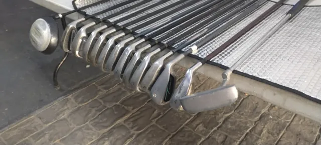 Conjunto de palos de golf. - Incluye varios palos de diferentes tipos. - Funda protectora para los palos.