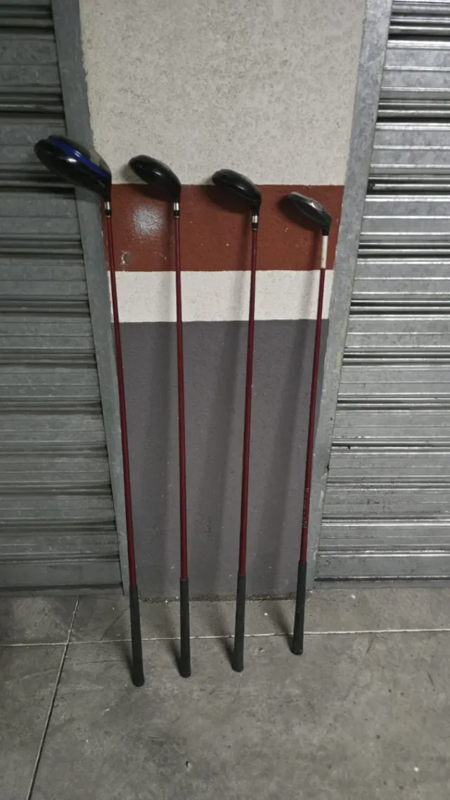 Conjunto de palos de golf para mujer. - Incluye 4 palos de golf. - Varillas de color rojo. - recomendable cambiar el grip