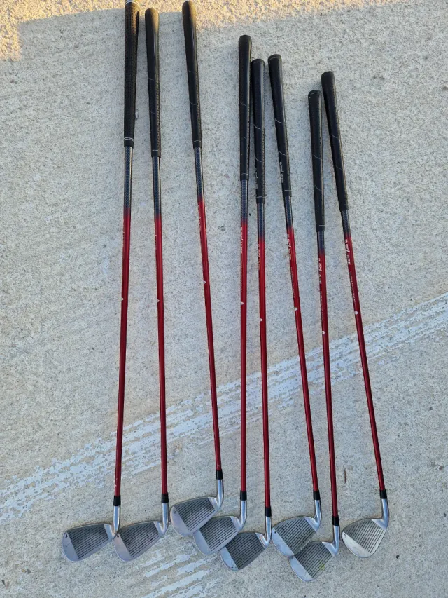 Juego de palos grafito mujer. Ideal para principiantes. En buen estado. - Incluye: Sand, Pitch, madera 3 y hierros 9, 8, 7, 6, 5, 4. Se regala bolsa en negro y rojo.