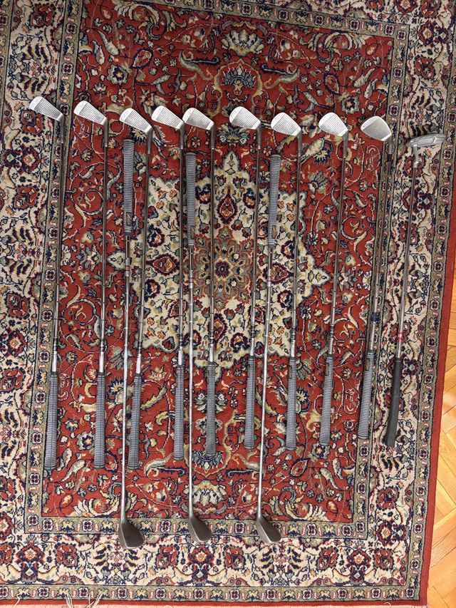 Detalles del productoSet de palos de golf Tiger Shark para zurdos. Hierros 3, 4, 5, 6, 7, 8, 9, P, S, putter. Maderas 1, 3 y 5. Grips nuevos. Se incluye bolsa de transporte ligera Inesis por 20 euros más.