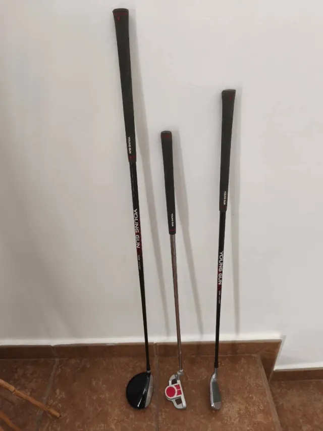 Set de palos de golf Young Gun Junior. - Incluye un driver, un putter y un hierro. - Diseño específico para jóvenes golfistas.