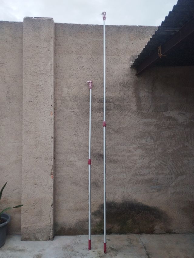 Dos palos extensibles de aluminio, ideales para trabajos de pintura. - Material: Aluminio. - Color: Plateado con detalles en rojo. - Longitud ajustable.