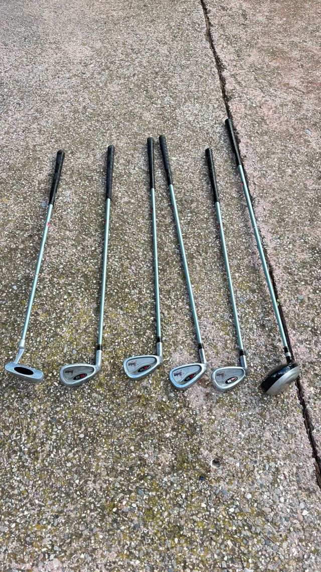 Detalles del productoSet de palos de golf para niños zurdos, marca Boston, talla 3. Perfectos para niños entre 11 y 14 años. Incluye seis palos: driver, putter, sand wedge, hierro 5, 7 y 9, todos ultraligeros para mejor manejo y aprendizaje.