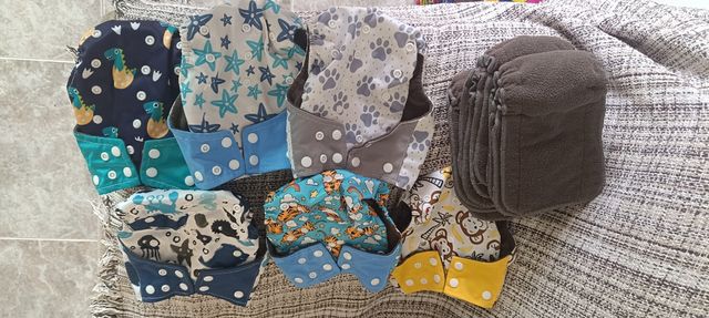 Detalles del productoPañales reutilizables para bebé, ideales para cuidar el medio ambiente. Son 6 pañales de tela, con diferentes estampados coloridos y alegres. - Están nuevos - Perfectos para un uso diario cómodo y práctico. - Se incluyen 6 absorbentes de microfibra.
