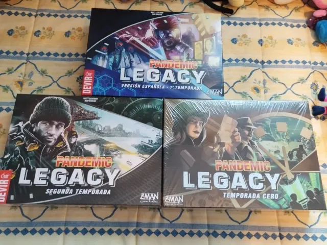 Detalles del productoLote de los tres juegos de mesa Pandemic Legacy.