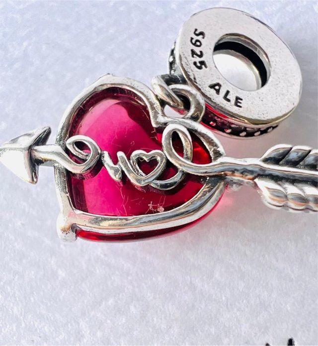 Pandora Charm Corazón Flechado Amor Rojo Plata