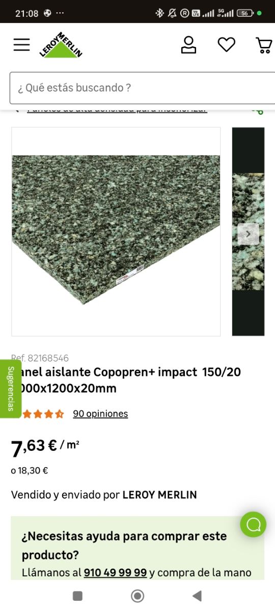 Panel aislante acústico, 20mmx2000x120