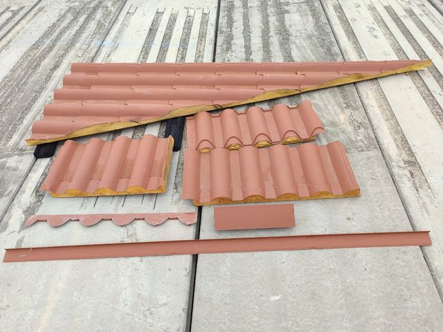 Color del panel: Imitando teja por arriba y color roble por debajo.
