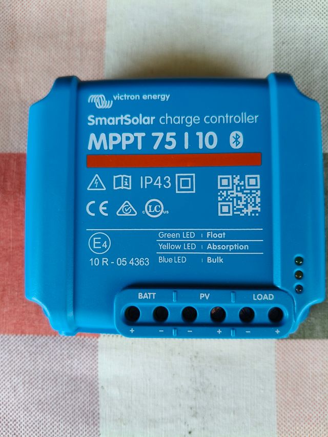 - Regulador de carga MPPT 75/10, con LEDs indicadores de estado.