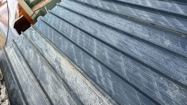 Paneles sándwich metálicos para cubiertas o fachadas. - Acabado gris. - Superficie con relieve. - Ideal para construcciones.
