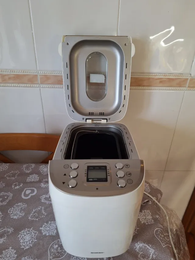 Detalles del productoPanificadora SilverCrest en color blanco. Ideal para preparar pan casero.