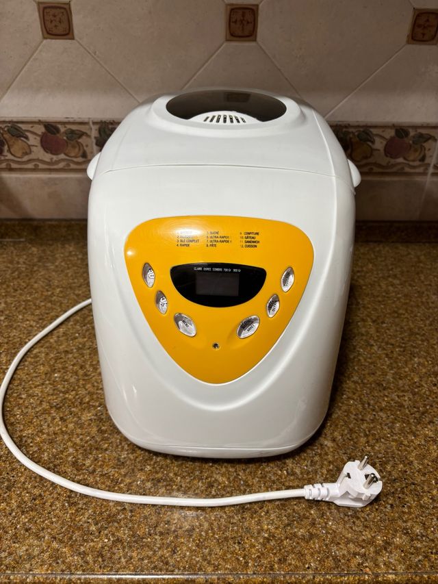 Detalles del productoPanificadora Siplec de 2.0 libras en muy buen estado. Es de color blanco y amarillo, y tiene un diseño compacto.