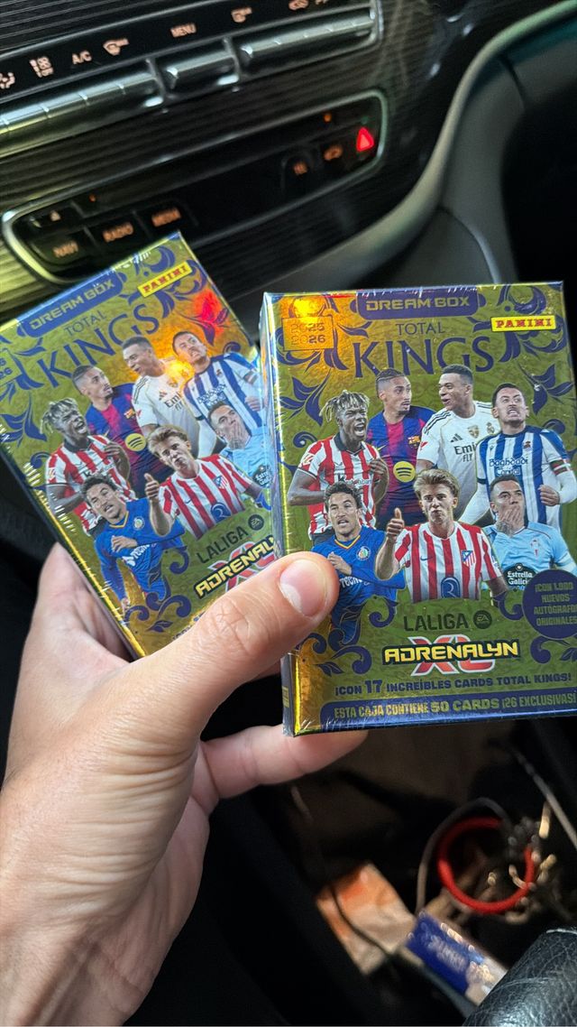 Caja de cromos Panini Adrenalyn XL de la temporada 2025/2026. - Modelo Dream Box. - Sin abrir, en perfecto estado. - Contiene 50 cards, incluyendo 17 Total Kings.