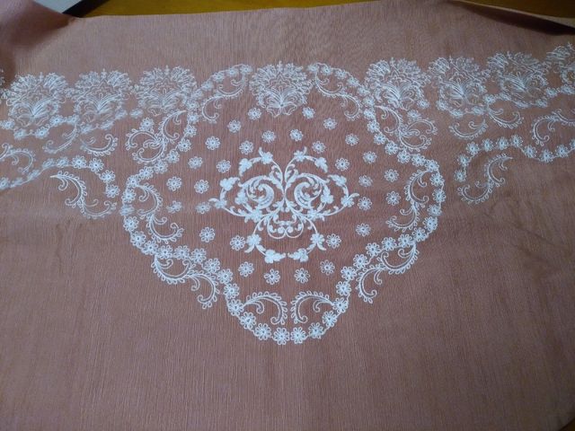 Detalles del productoPañolon, fallera, en otoman rosa maquillaje bordado en cadeneta color blanco.
