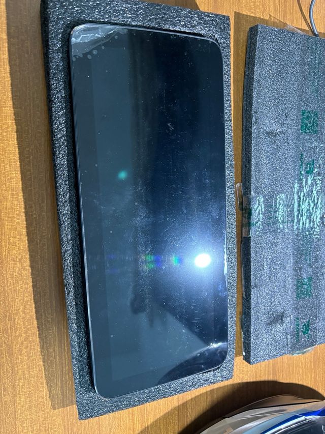 Proviene de una caja de amazon devoluciones, tiene la esquina con un golpe, pero no llega a la pantalla táctil.