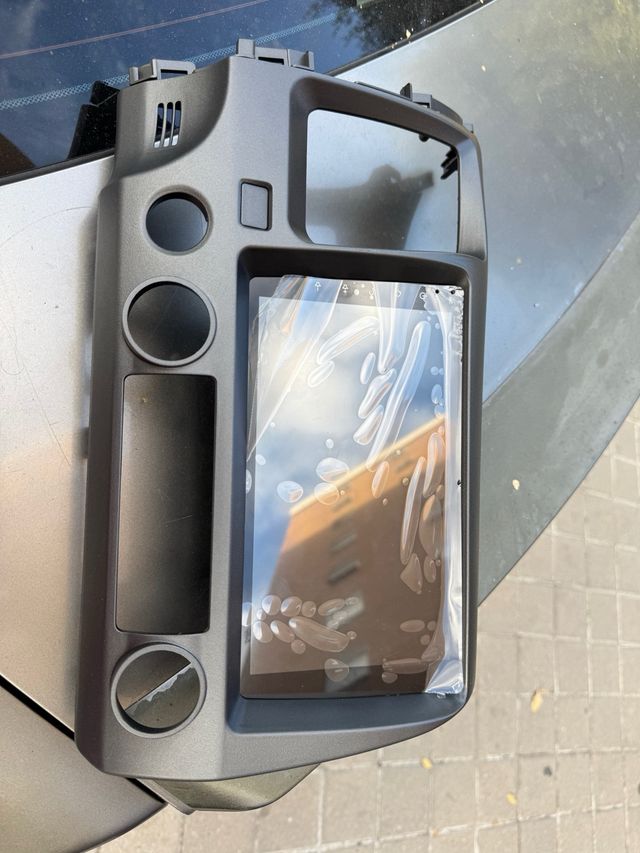 Marco frontal para pantalla Android de coche. Diseñado para integrarse en el salpicadero. - Color negro mate. - Acabado liso. - Incluye rejillas de ventilación.