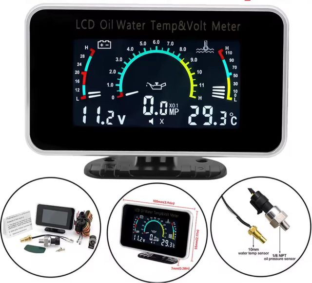 medidor temperatura agua , presión aceite y voltaje .