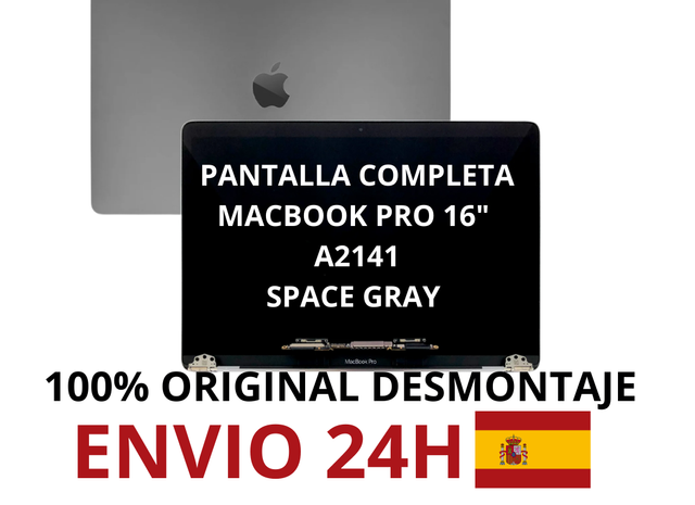 Detalles del productoPantalla completa original para MacBook Pro 16", modelo A2141, en color Space Gray.