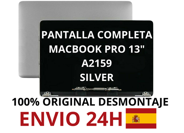 Detalles del productoPantalla completa original para MacBook Pro 13", modelo A2159, en color Silver.