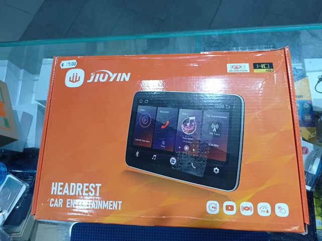 Detalles del productoPantalla multimedia para reposacabezas de coche JIOYIN, en perfecto estado. Incluye pantalla, mando a distancia y cargador de coche.