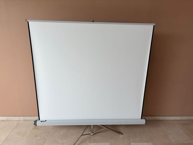 Pantalla de proyección portátil con soporte. - Pantalla blanca. - Soporte plegable.