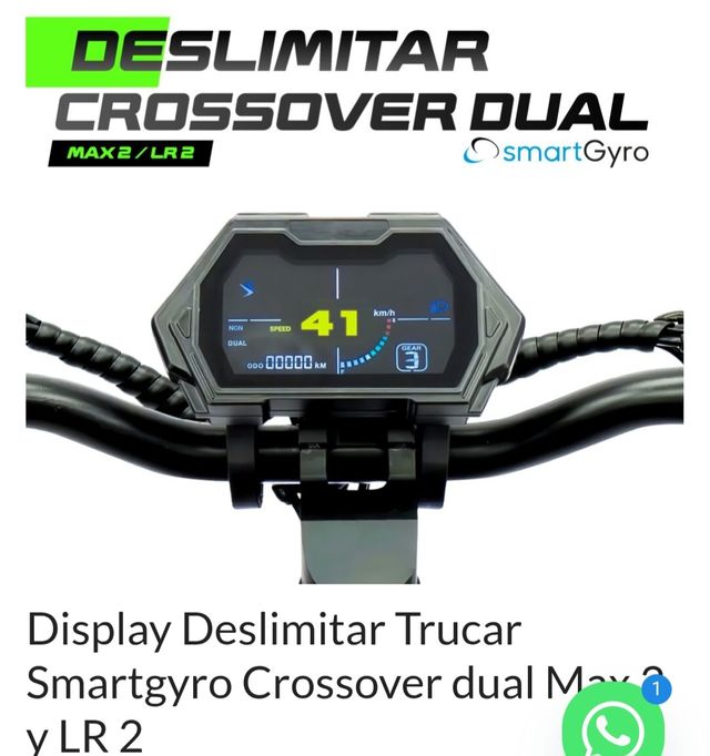 Pantalla DESLIMITADA para patinete eléctrico Smartgyro Crossover Dual Max2 y LR2. - Velocidad 41 km/h. - Marcha: 3. Nueva sin uso. 4C