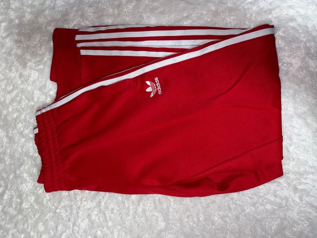 Pantalón Adidas Rojo con Rayas Blancas