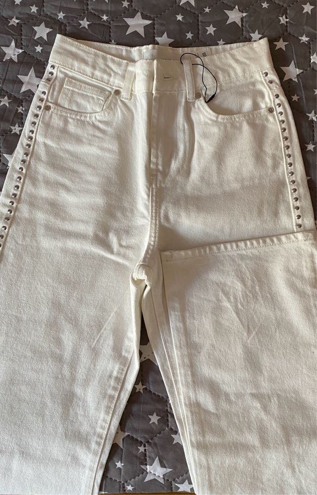 Pantalón blanco Zara tachuelas