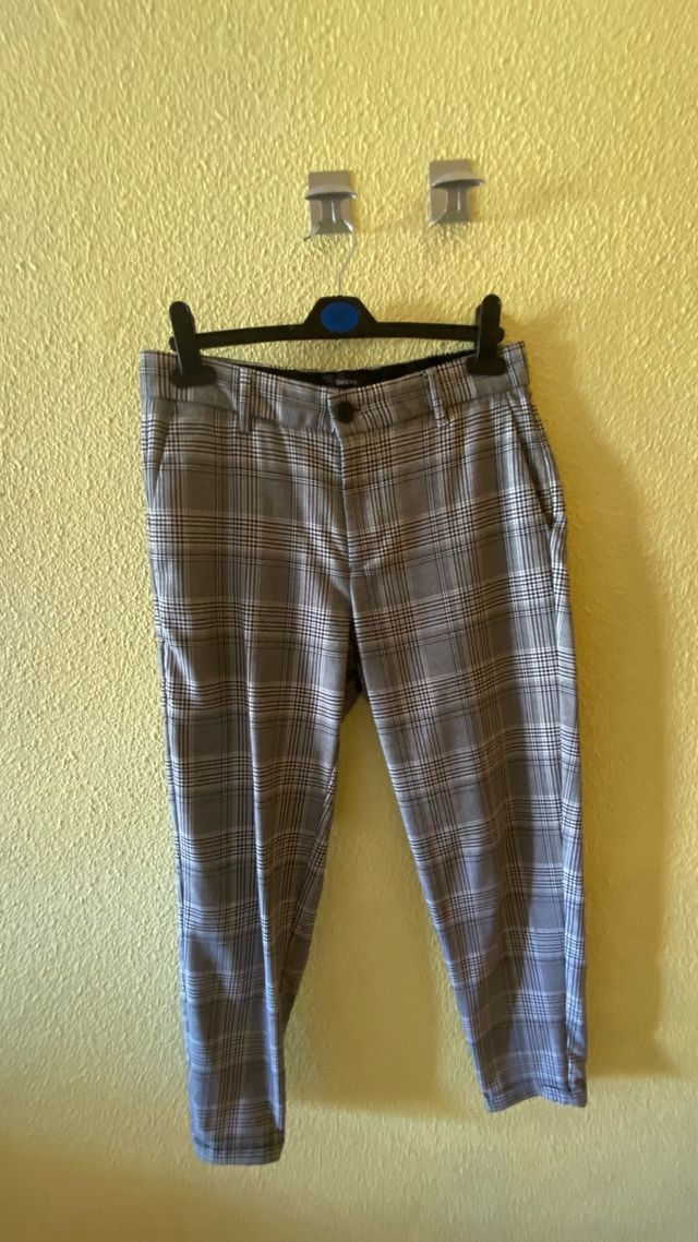 Pantalon chino largo de cuadros